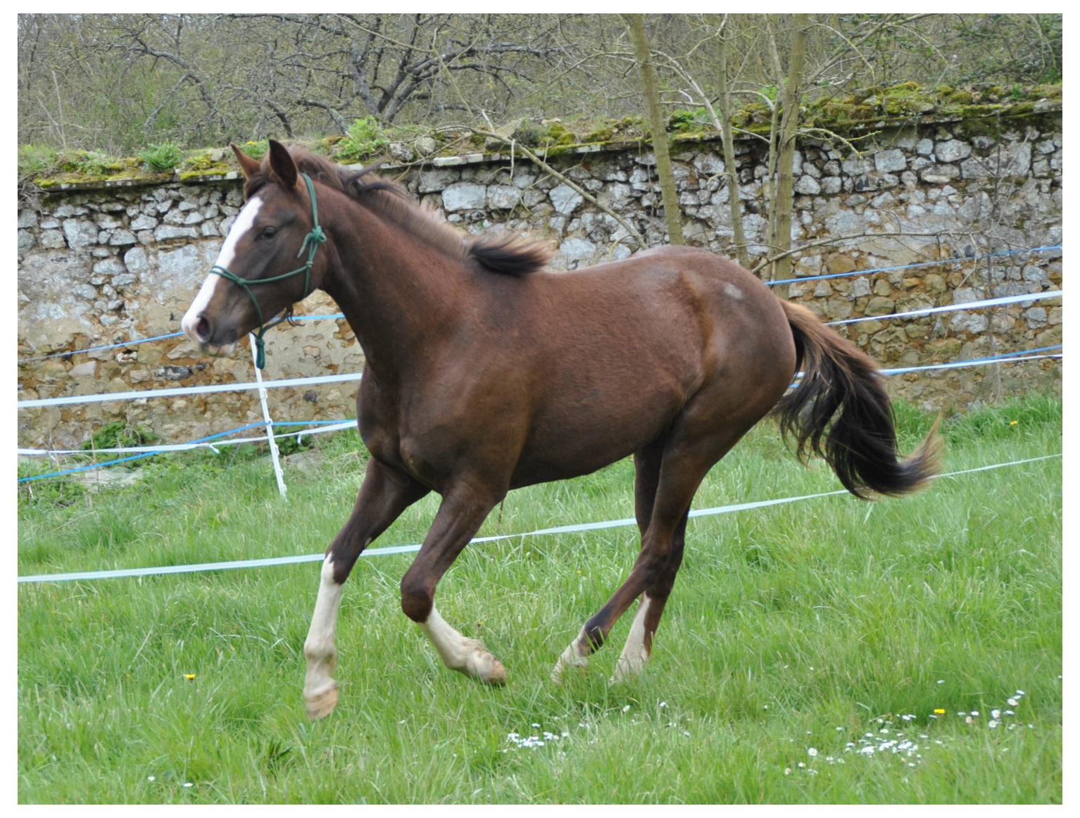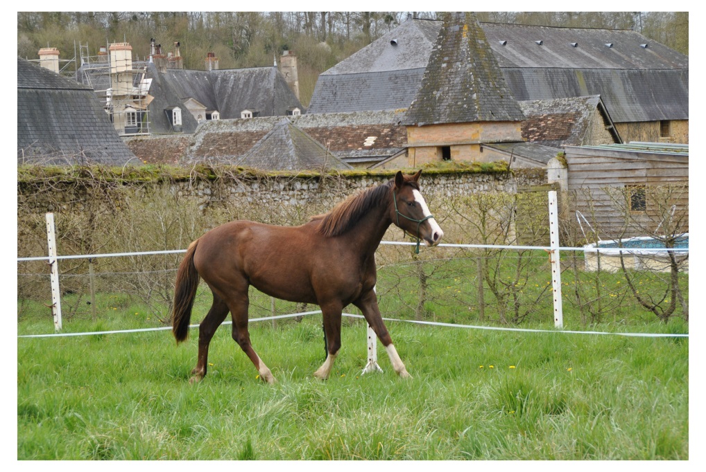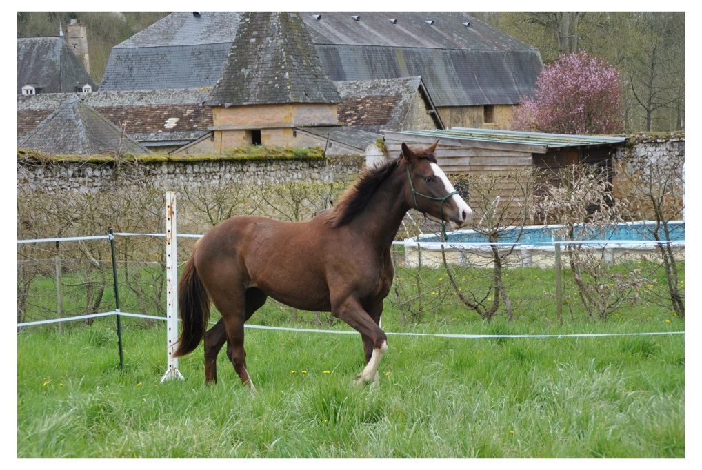 Après quelques tours de galop car elle ne comprenait pas ce que je lui voulait et avait tendance à s’arrêter à la porte, elle a fini par prendre la piste tranquillement.