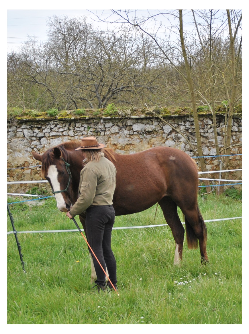Je m'attendais à galérer car elle était sous tension au pansage et décollait au moindre truc, mai en faite elle s'est mise au travail rapidement. Même si elle n'était pas 100% avec moi, elle ne se préoccupait pas des choses qui auraient pu lui faire peur....
