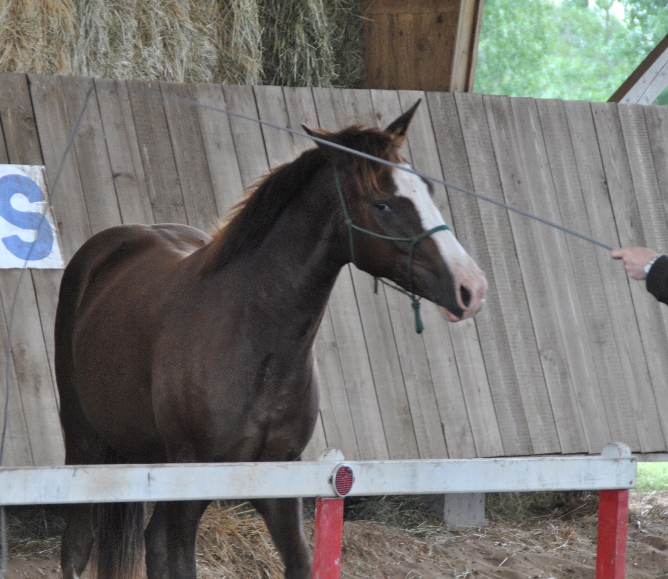 Bon , pour le moment elle cherche toujours à éviter le travail en inventant tout un tat de conneries... Elle se demande pourquoi on vient l’enquiquiner à faire des tours de piste sur une allure imposée alors que jusque là elle était pénard dans son champs!