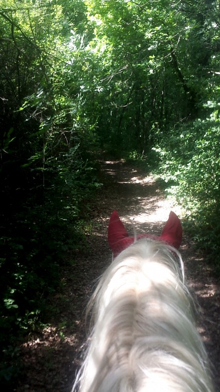Avant de repartir je lui propose à boire et là enfin elle boit et pas qu'un peu donc ça a du lui faire du bien. Je la remouille l'encolure encore un peu, re selle et mise du filet. Puis cette fois on repart tous ensemble.