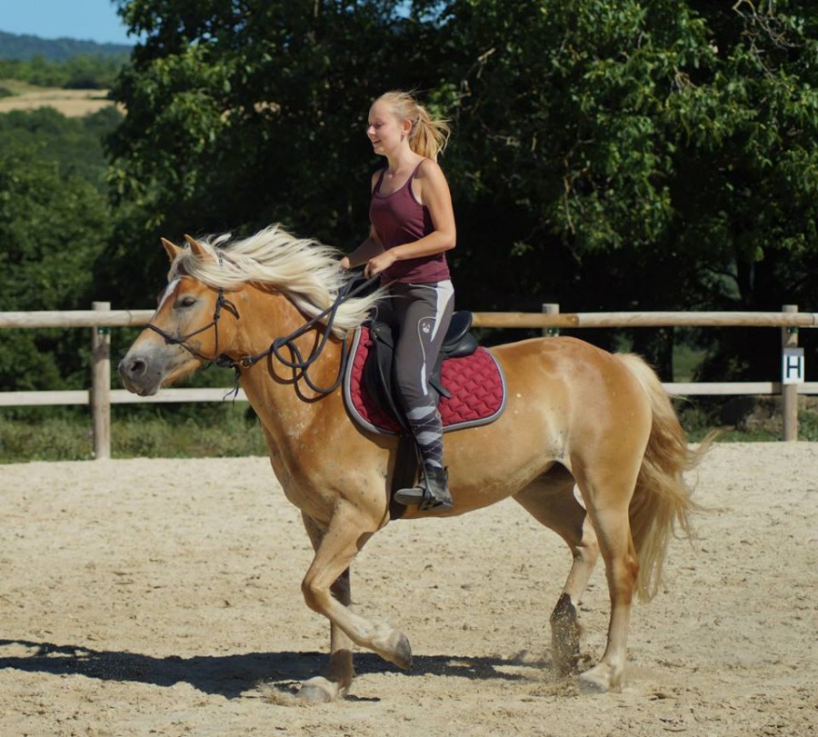 On a beaucoup galoper sur des super chemins en herbe et plats (on m'avais prévenue que ça galoper beaucoup). Il y a eu aussi des virage à l'équerre de prit en plein galop bon elle s'est pas trop mal débrouiller à les faire.