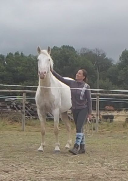 mardi 21 - Reprise tranquillement, après 1 mois et demi sans travailler. Petite séance à pied où on reprend les bases, puis un peu de plat, gentiment, moteur, direction, et constat que j'avais déjà fait, il va falloir orienter le travail pour reculer son centre de gravité, elle est très sur les épaules et en appui sur son mors. (séance courte)