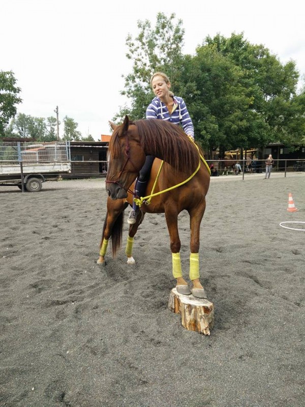 J'ai bossé la petite par contre. Je ne sais plus où j'en étais la dernière fois. Aujourd'hui, petite longe avec pas mal de transitions : sage et attentive. Montoir immobile niquel. Arrêts montés de mieux en mieux et on a pas mal trotté, donc top. Elle répond super bien à la mise en avant etc
