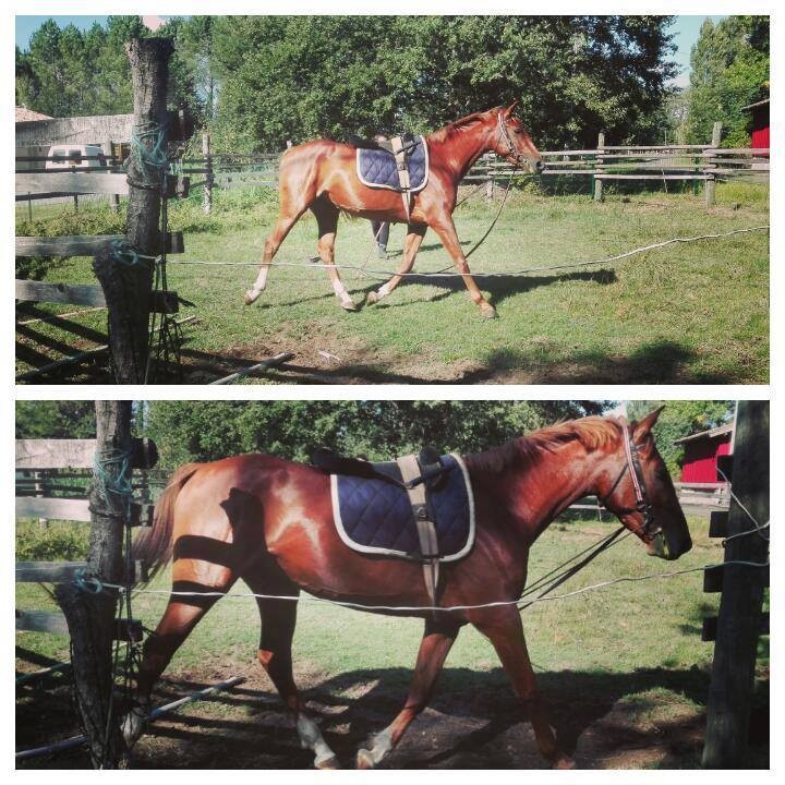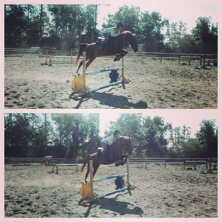 Niveau saut je n'ai pas fait le cso que je devais faire dimanche dernier, je ne nous sentais pas prête de plus elle me refait une poussée de croissance et a le cul large plus haut (je me demande bien quand elle aura finit celle là.. ahah). Par contre je l'ai amené au concours pour qu'elle découvre l'ambianceeee! Du coup en saut on a fait un cours sur du 80cm très bien, elle n'aime pas les doubles mais au bout de 2/3 fois elle y va, puis un autre cours sur un parcours de croix de gymnastique qui s'est aussi bien passé! On saute toujours tous les 15 jours, je prend mon temps de ce côté là, j'attend qu'elle soit bien fini morphologiquement et qu'elle soit au top sur le plat!