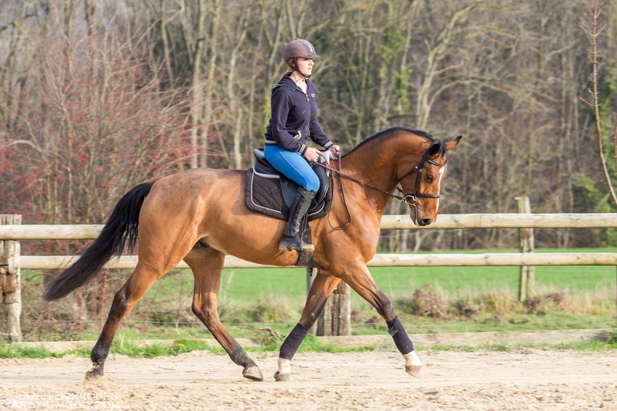 Il est toujours appliqué au travail et continue de bien progresser. Je n'ai pas eu le temps de l'emmener en cours depuis 2 mois donc j'ai trop hâte d'y retourner pour pouvoir ressauter. Sur le plat, il maitrise bien les cessions au pas et commence à bien maitriser au trot, les EED au pas et les transitions pas/galop.
