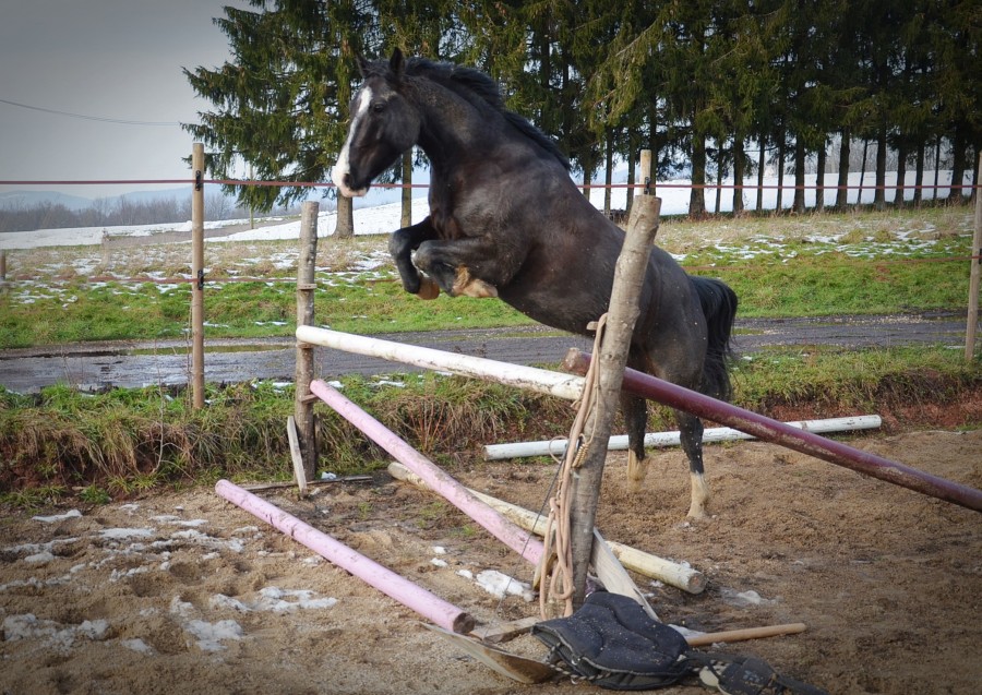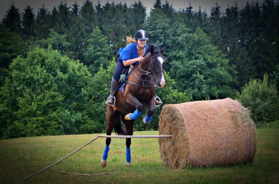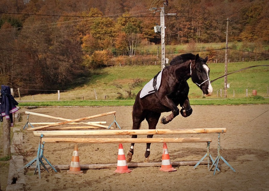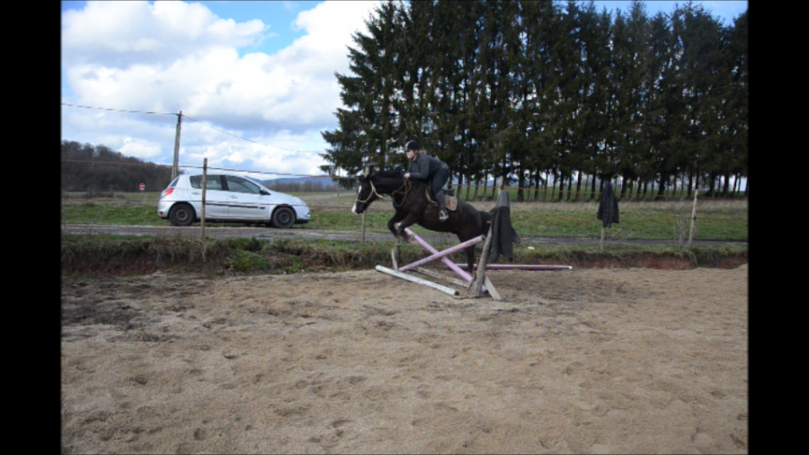 En février 2015, après s'être offert une super selle, nous avons repris le travail doucement... Et nous avons gentiment commencer à sautiller, même si nous le faisions déjà en extérieur (tronc, fossé, rivière..)
