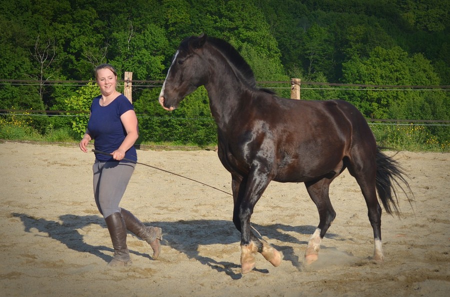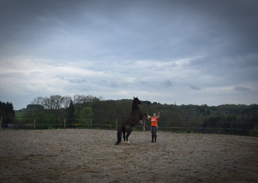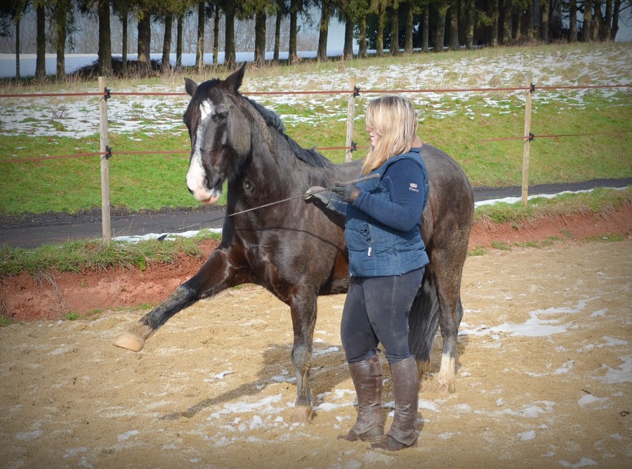 Fin Février 2016, nous avons trouver une carrière à louer, pas loin de notre ferme, et le travail a donc repris... Autant au sol... Que monté ! Et même en extérieur ! Et plus sérieusement ce coup ci !