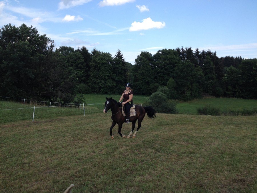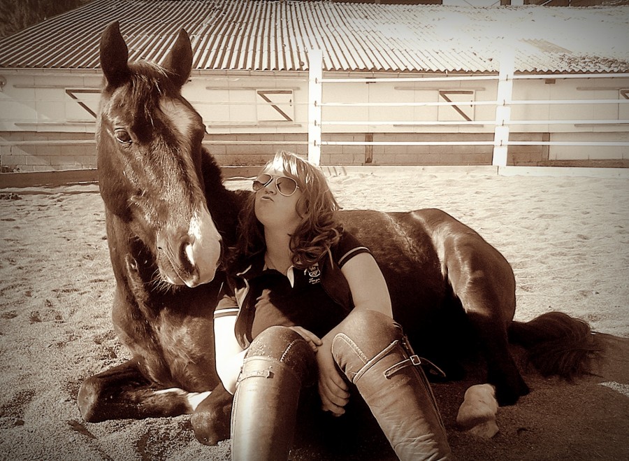 Pour être honnête d'ailleurs, je ne l'ai jamais vraiment débourré... Ca s'est fait comme ça, comme quelque chose de normal. On changeait d'écurie et nous devions nous y rendre à pied (4h de marche), au bout de 3 bonnes heures, on s'est dit comme ça "C'est quand même con d'avoir des chevaux et de devoir marcher tout le long", alors on est monté dessus et tout s'est passé normalement... Pas de rodéo, pas de violence, juste moi sur mon petit cheval, à cru en licol sur les chemins de campagne... Bien sur tout ceci avait tout de même été précédé par un minimum de travail, il acceptait la selle sur son dos, nous avions fait des balades à pied sellé, je faisais souvent semblant de lui grimper sur le dos en sautant à côté.