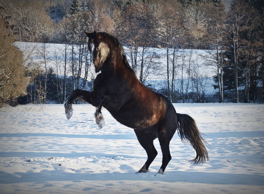 L'hiver est ensuite arrivé doucement, et il a fait un petit break post débourrage avec beaucoup de travail à pied, de balade en main et quelques balades montées...
