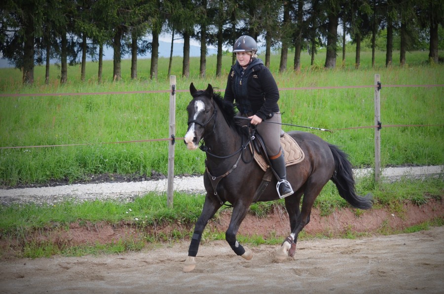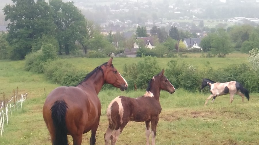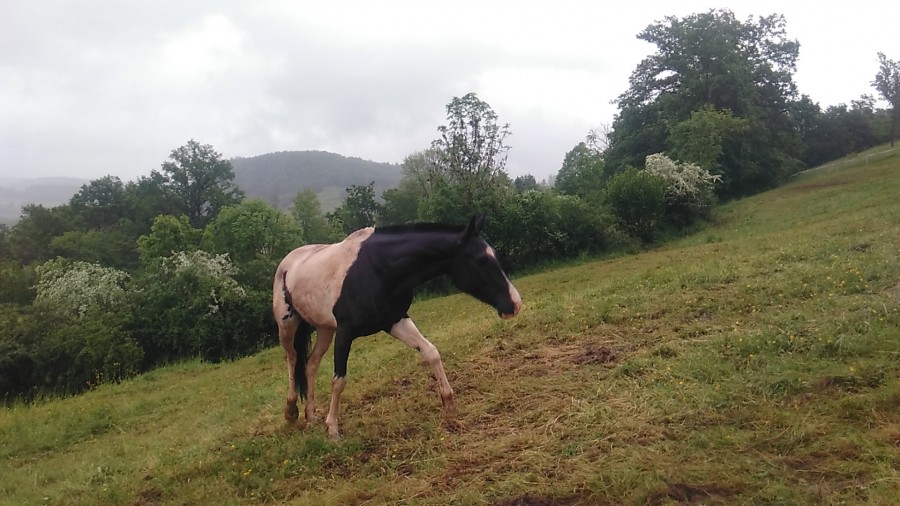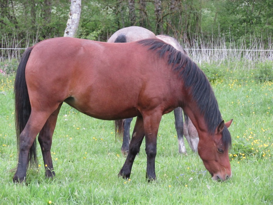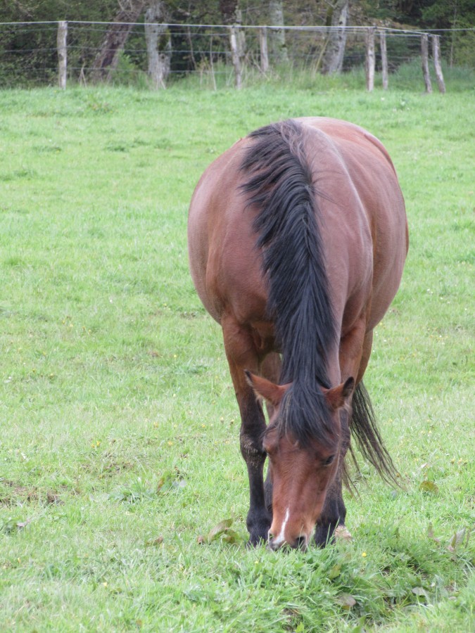 Ensuite nous sommes rentrés au van, il était déjà 11h45. Le temps de vérifier les clôtures du paddock, de desseller les juments et hop au pré, avec ombre et soleil, et surtout de l'herbe, comme si elles en avaient besoin !