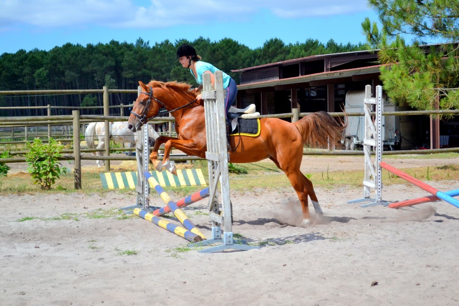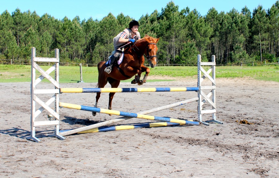 En saut ce n’est plus la même également elle qui tapait toujours des petits pieds ou partait complètement sur les épaules, et bien maintenant je peux vous dire que je les sens passer les sauts, le garrot se lève très bien ! On ne saute pas énormément je dirais une ou deux fois par mois, parce que je me concentre sur son dressage, mais quand on saute on peut enchaîner 90-1m facilement ! Mais elle saute de temps en temps avec sa petite cavalière plus souvent qu’avec moi ! Et normalement le 30 décembre je fais un concours en 90cm ! Ce sera notre 3ème concours, sachant que les deux premiers on avait fait sans fautes et premières à chaque fois en espérant que celui-ci se passe aussi bien !!