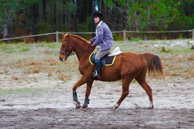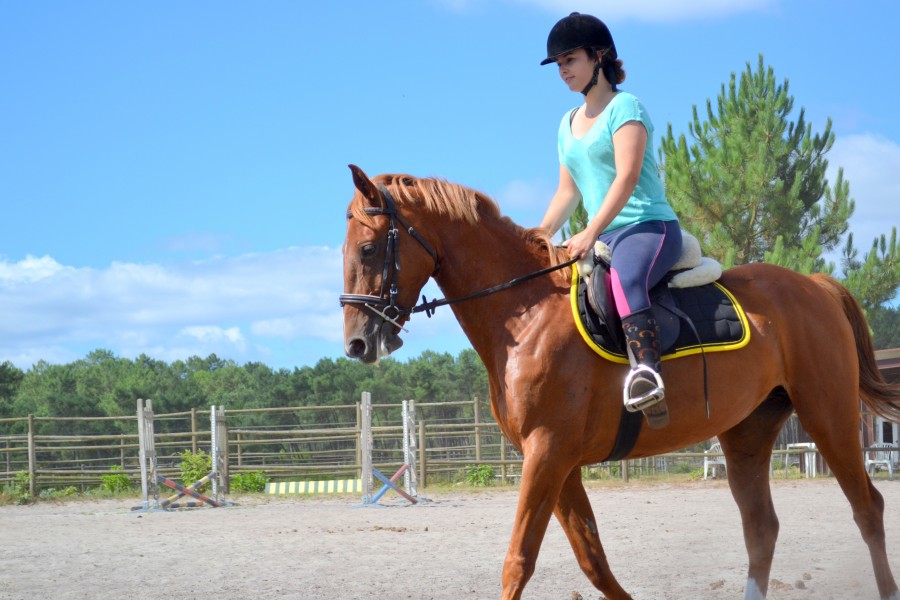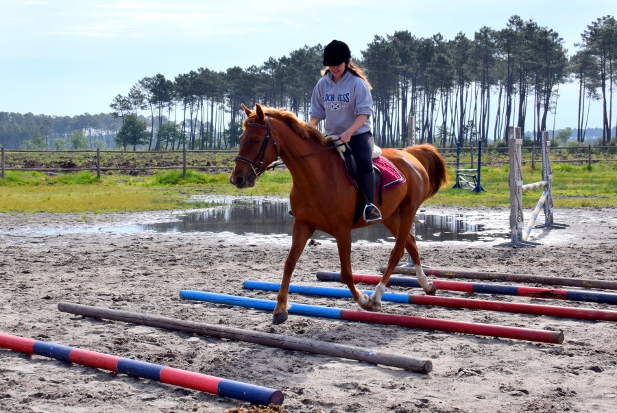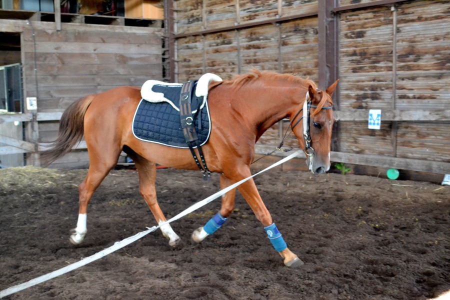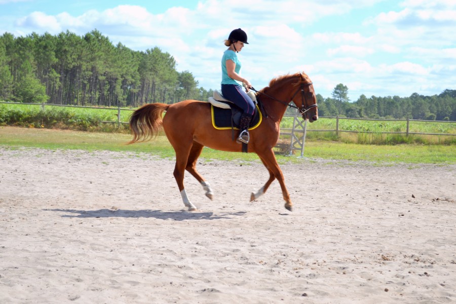 Au boulot elle est monstrueuse, on avait de gros problème de mise en équilibre qui maintenant sont loins derrière nous. Elle apprend hyper vite et se met à fond dans le boulot, elle est montée entre 3 et 4 fois par semaines par moi-même ou une petite cavalière du club à qui je la prête pour me la sortir quand je n’en ai pas le temps !