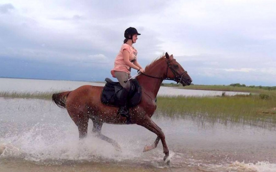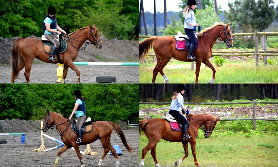 En dressage elle a énormément progressé, on prend des cours avec Jeanne Linguinou écuyère à Versailles qui nous aide beaucoup dans notre progression! Je la travaille toujours dans le but de trouver cet équilibre idéal donc, elle qui avait beaucoup de mal à se redresser ce qui nous avait peiné sur certaines figures et du coup en saut également! Mais ceci est loin derrière nous, elle me fait rêver en dressage moi qui n'aimais pas ça je me suis trouvée une réelle passion dedans et je rêve maintenant de concours de dressage et non plus de saut!