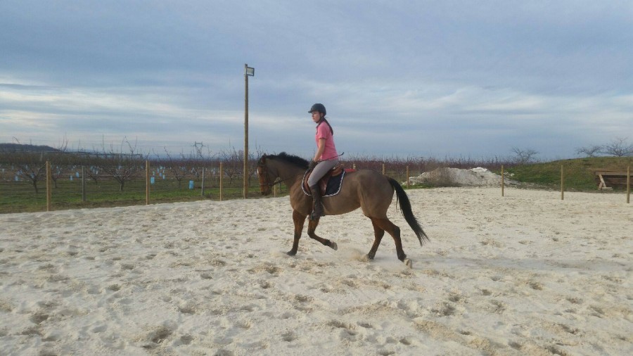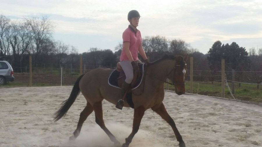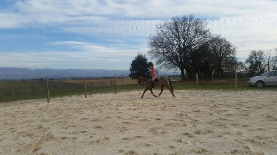 5) Le cercle. En effet le rond de longe était TRES impressionnant pour les chevaux. Au bout du manège on voyait la forêt en contre-bas avec des personnes qui se baladaient à quelques mètres sous nos pieds, des baptêmes poney, des enfants qui jouaient au ballon etc.