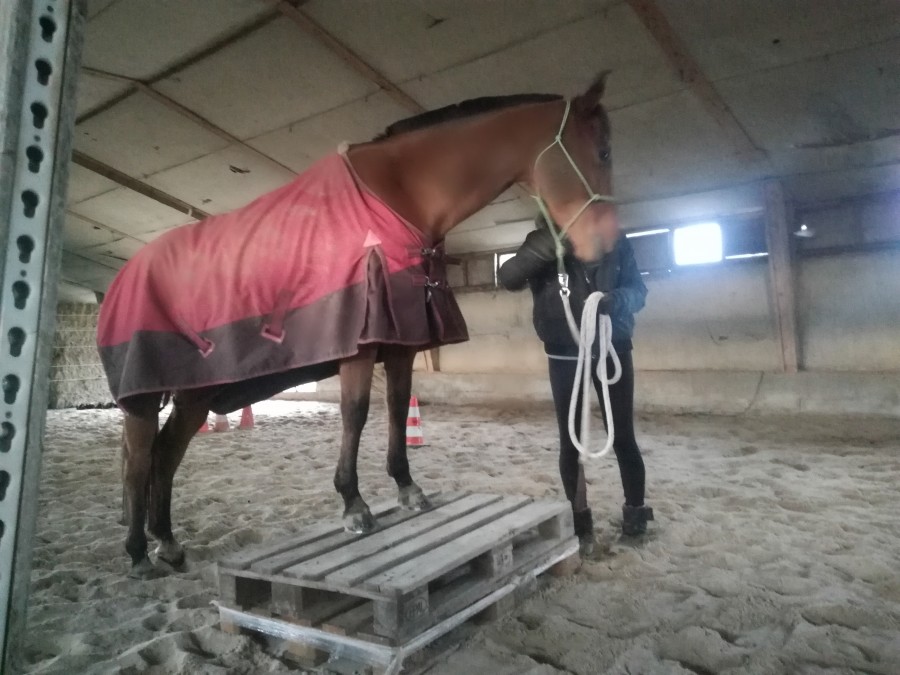 Cours de plat, travail sur la rectitude et l'incurvation, transitions arrêt/trot/arret et quelques cavalettis, pas facile ce dernier exo, elle a besoin de beaucoup de répétitions, pour se caler, se calmer aussi et se gérer sans que je l'assiste.