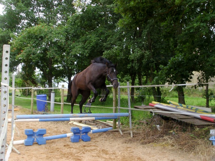 Mais sinon elle a déjà sauté le portail du pré 1m environ mais elle l'a cassé il était en monté et elle est arrivée a fond dessus !