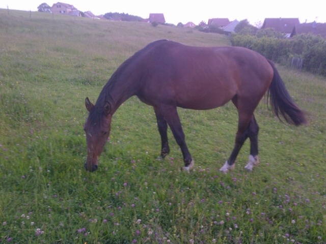 Coucou je mets moi aussi quelques petites photos aujourd'hui et elle aussi elle est bai à peu de chose près comme "Kiki" de Jenny,c'est pas une couleur extraordinaire mais bon moi ça me va!