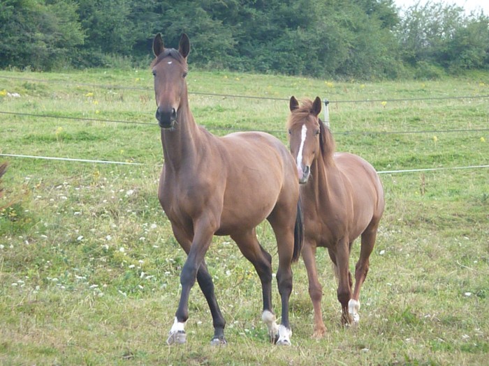 Elle me fait vraiment trop rire!Et quand j'arrive dans le champ pour m'en occuper (brosse,papouilles...)elle est sympa,elle se fiche totalement que les autres ne soient pas là,elle est d'un calme!Par contre avec les autres chevaux elle a un caractère...!