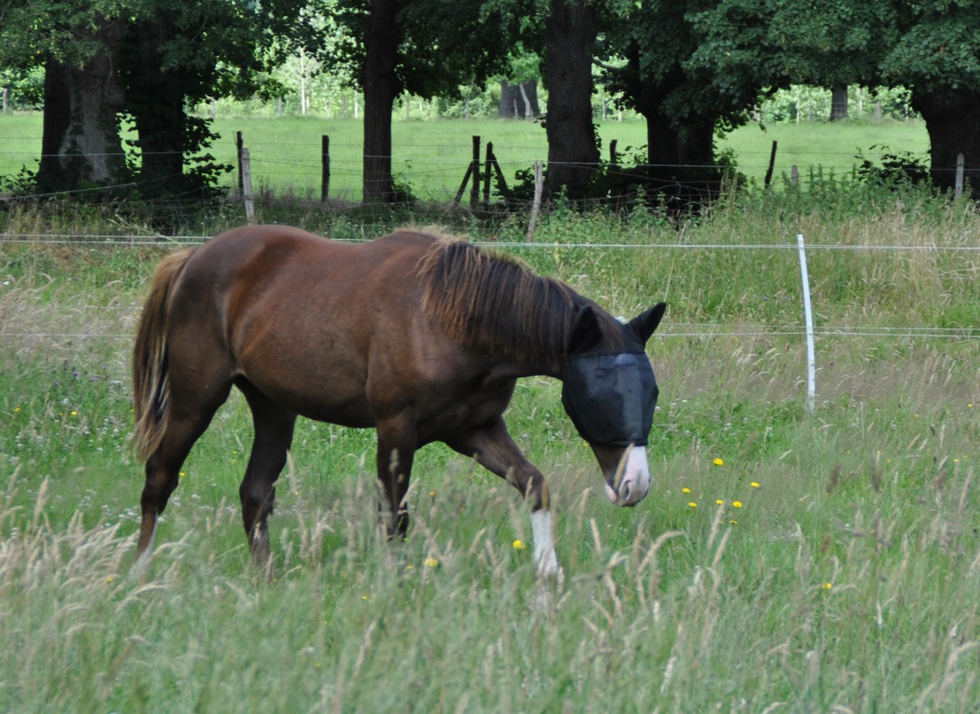 Avec son masque anti mouches moche.... Mais elle a les yeux qui pleurs tout le temps autrement.