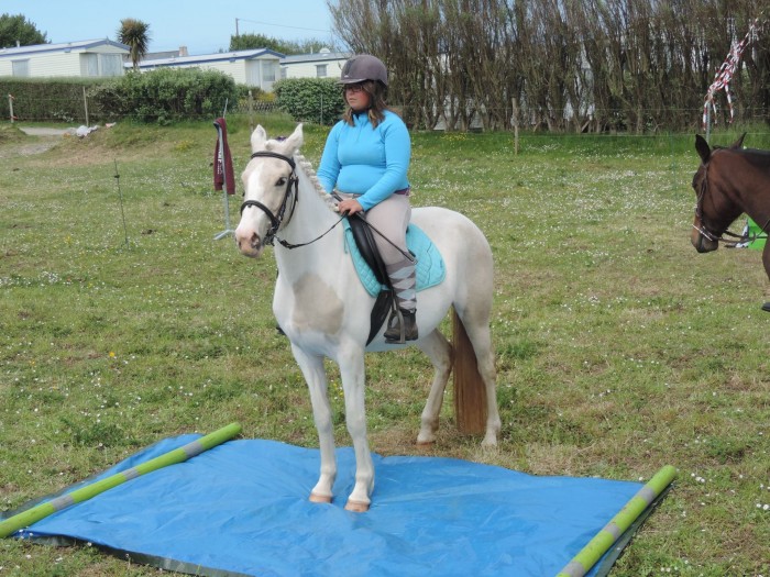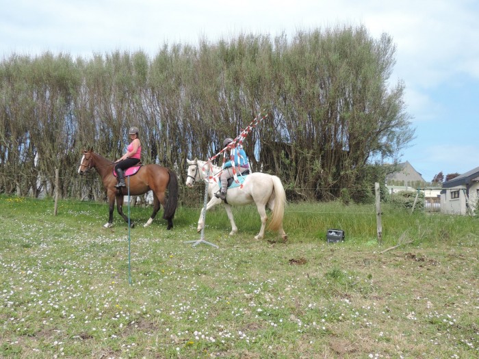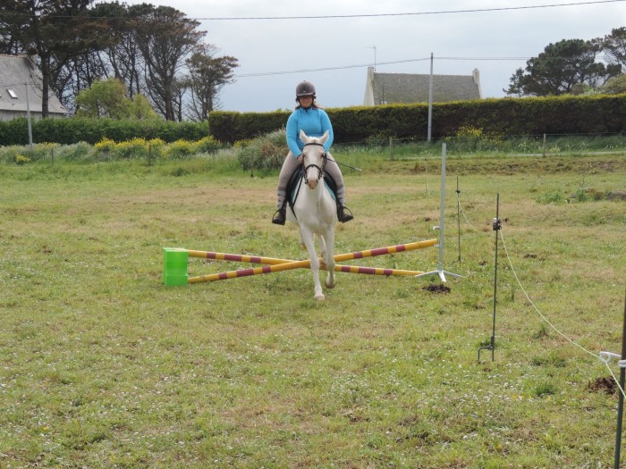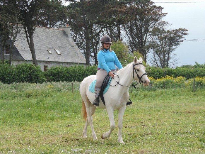 Du coup, c'était pas du tout prévu, mais zou, une selle sur le dos, et me voilà à califourchon sur choupinette. Quelques tours au pas et au trot en longe, Bastet ne dit rien donc on attache la longe pour me faire des rênes sur le licol, et au pas et au trot lâchée