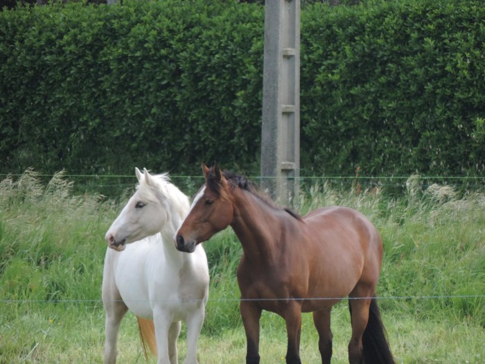 Je descends, je donne tout de suite une carotte (j'en avais en poche), gros câlin, pansage et retour au pré.