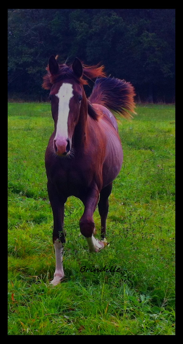 Petite visite à bébé aujourd'hui, elle était spéciale. Intenable au début, voulais pas avancer, se stoppait en pleine marche alors qu'on était même pas arrivé au lieu de pansage, arrêtait pas s'agiter, voulait pas donner un pied (elle se laissait tomber à genoux puis comme je lâchais pas elle prenait appuie pour reculer fort), elle a tirer 2 fois au renard (heureusement que je l'attache à la ficelle).Voulait pas qu'on lui brosse la tête.