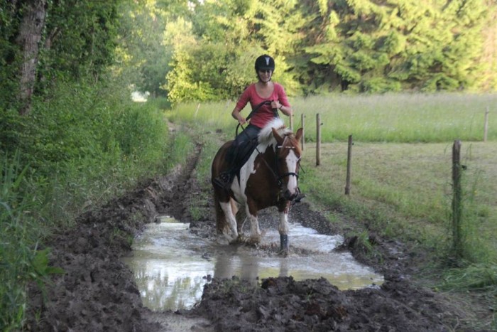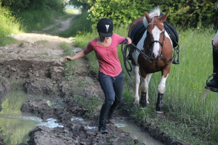 Elle était un peu hésitante à marcher dans les grosses flaques, du coup j'ai du marcher MOI dans la boue et elle sur le chemin