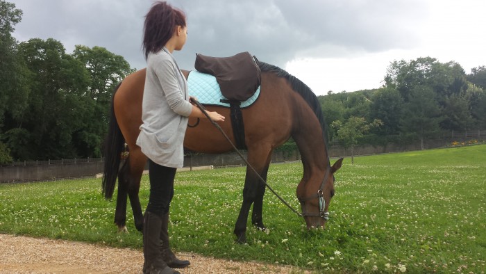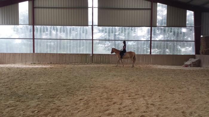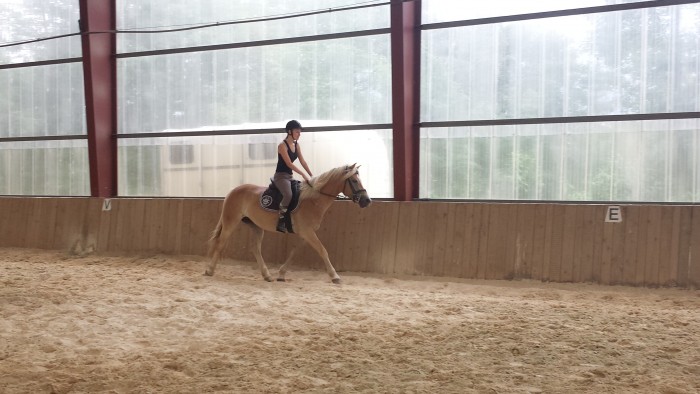 Elle a été en mode branchée sur 15000... J'étais à peine sur son dos, demandé le pas, fini au galop mode grosse tarée. Mais étant donné que Baïna est froide à la base, j'ai laissé faire, voir encouragé, on a joué un peu. J'ai profité de cette energie (canalisable, même si coté directionnel ça a été un peu laborieux...) pour copier fanny et tenter les premières croix, toutes petites. Elle ne se pose pas de question, limite pas assez, c'était tellement bas, elle n'a pas fait gaffe à un passage, s'est laissé aller et a tout dégommé... Plutôt franche, pas super droite elle a tendance à décaler si je la laisse se débrouiller, mais ça a semblé lui plaire, elle a joué un peu derrière. On termine la séance quand même sur du travail plus académique, je demande du calme, pour remettre la direction un peu mieux car elle vient couper son cercle bien souvent.