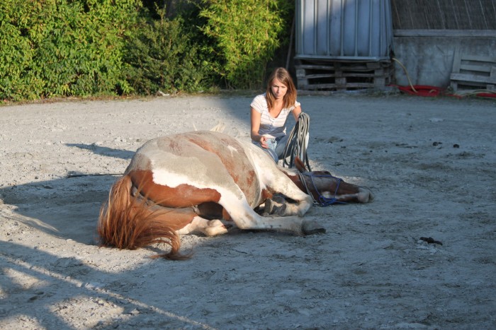 Heureusement une nana venait chercher sa jument, à 2 on s'en est sortie, le grand pote de Bailey s'est barré du prés quand je suis sortie.