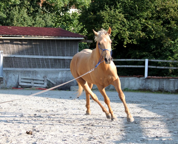 Je vais voir Bailey tout les jours, mercredi séance de longe, hier ça a duré 7min en tout et ce matin rien hormis pansage, douche et liberté au rond de longe.