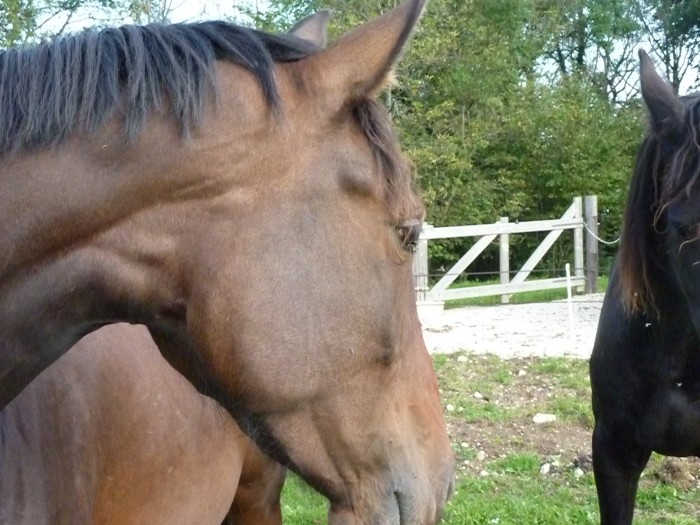 Malgré tout contente de ne pas la voir boiter, que le tendon n'a pas rechauffé ni gonflé et qu'elle n'a pas abîmé sa blessure aux glomes (au se contente de pas grand chose, hein!)