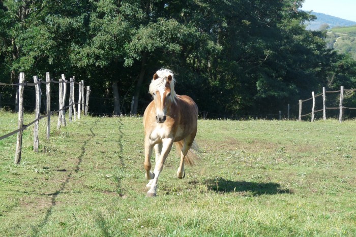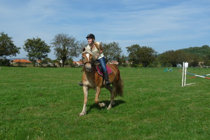 Balandra continue son petit bout de chemin, elle accepte parfaitement le mors maintenant, elle a néanmoins un peu de mal à se "tenir" dans les virages au galop, mais ça devrait venir.