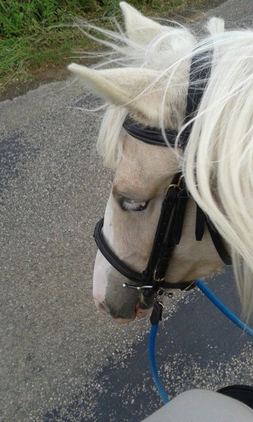 ) je l'ai mise derrière. Le copain c'est un irish... Il n'avance pas bien vite lol. Du coup au premier trot elle a eu du mal à se caler... Mais ça à été. Ensuite, on a croisé des voitures, elle à pris sur elle j'en suis fière! Les vaches elle n'avait jamais vu, au début elle regardait beaucoup, marchait de travers ^^ mais au final elle ne s'arretait pas traumatisée ^^