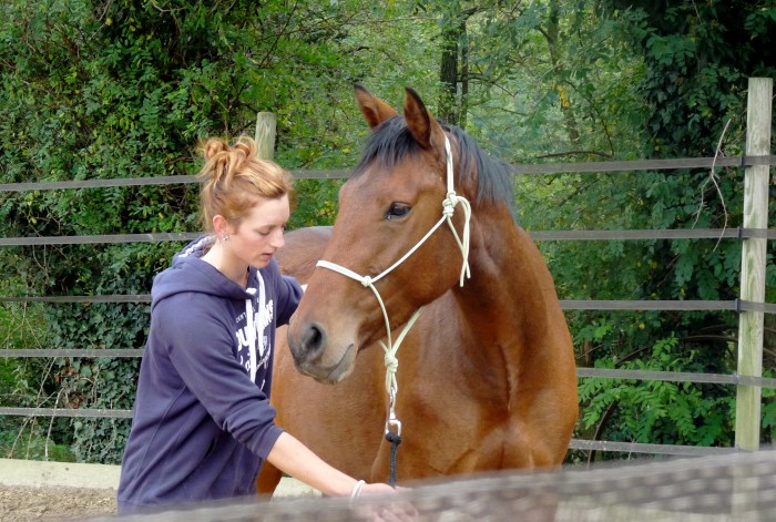 Nous avons du le monter en camion pour l'amener dans une écurie pour le voir se déplacer et prendre contact avec lui.