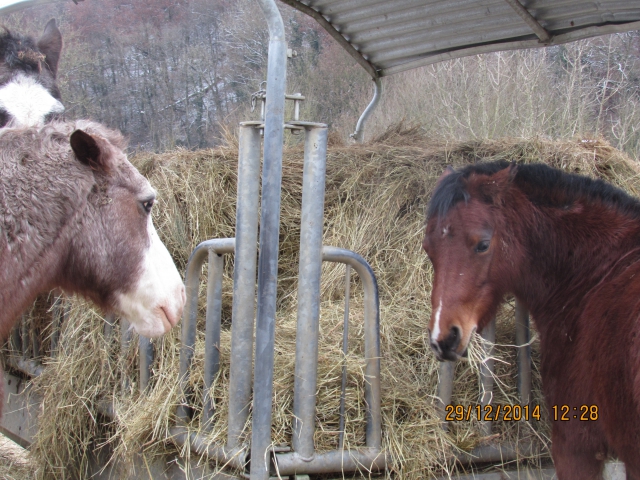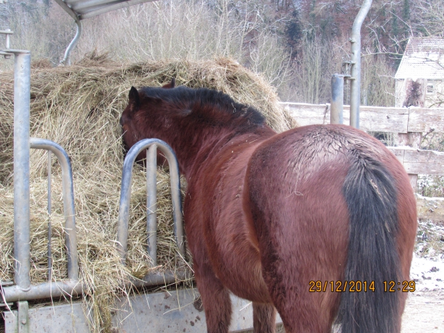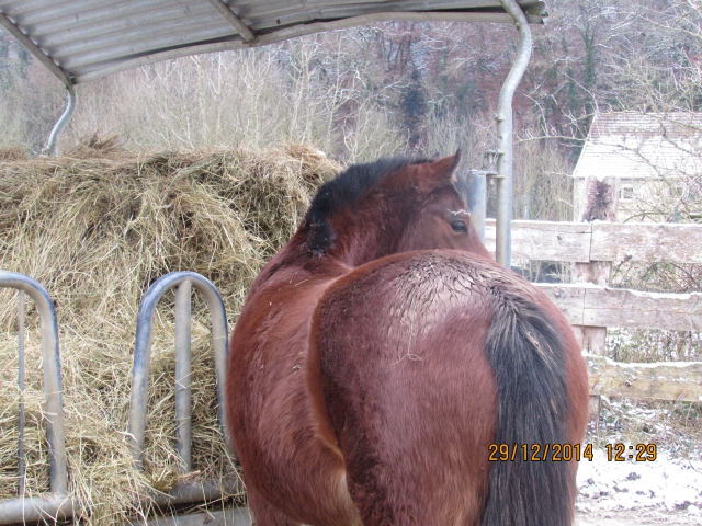 aprem decrassage d l abri pr faire un box a fidjy qui s est gentillment fait une entorse du boulet anterieur droit... grrr... donc nettoyer l'abri pr l'enfermer dedans avec foin eau et 4 bandages plus nettoyer et secher avant... (le tour de l'abri c cata boueu embulant, imaginer l'etat de fidjy meme apres une douche des membres ba c qd meme sale topissime) bref une fois la miss au chaud ... je m suis occupé de la mome qui nous a pas lacher d ailleur pdt qu j fesai le box limite si elle a pas ouvert la bouche pr prendre la fourche mdr...