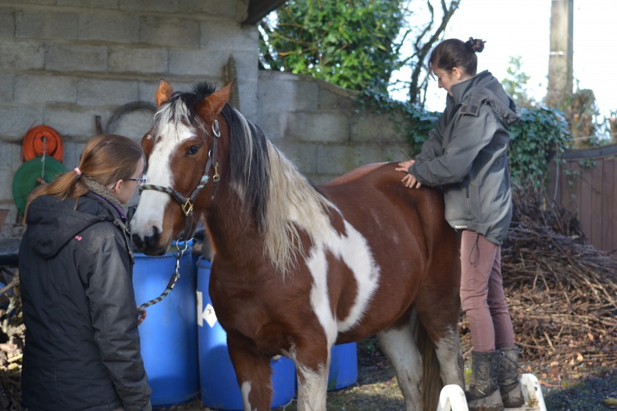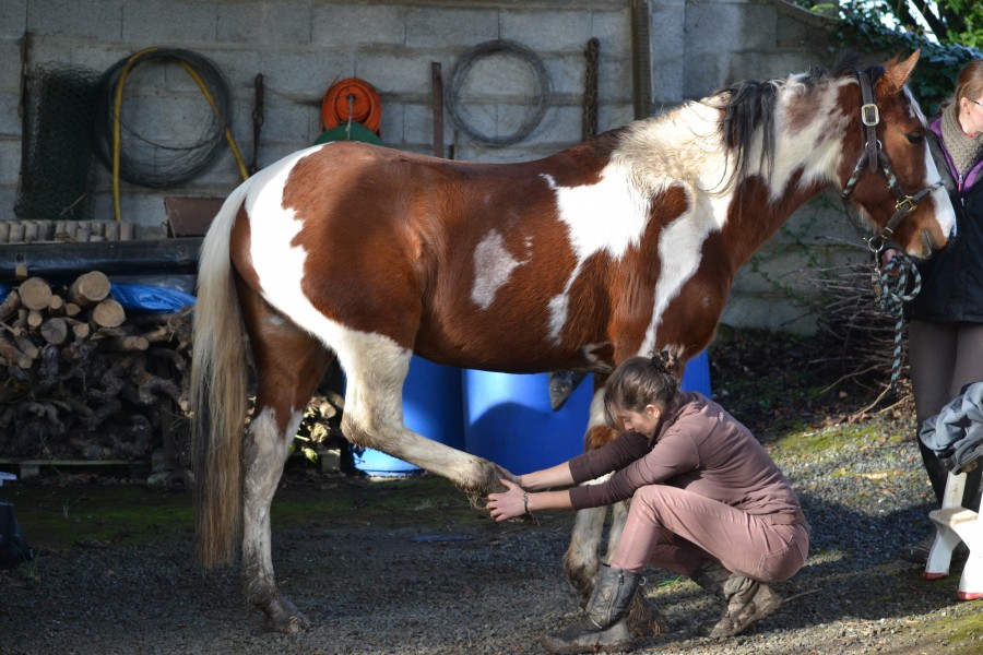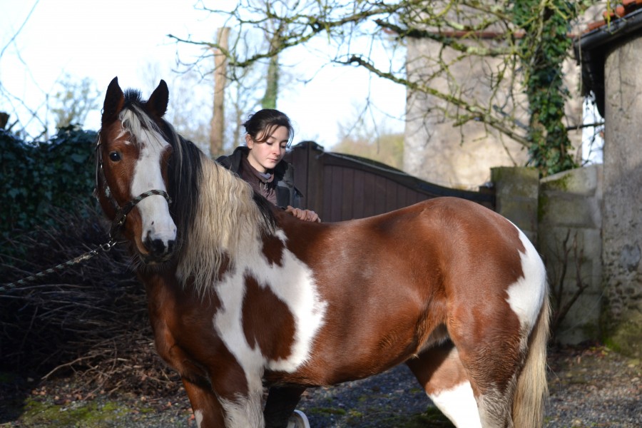 Elle a tout remit en ordre, a finit par des massages et des papouilles avec Brume. Au moment de la remmener au pré elle ne voulait plus bouger de l'endroit où elle s'était faîte manipuler, Stessy (l'ostéo) l'a massé deux minutes de plus du coup et l'a raccompagné sur quelques pas au pré !