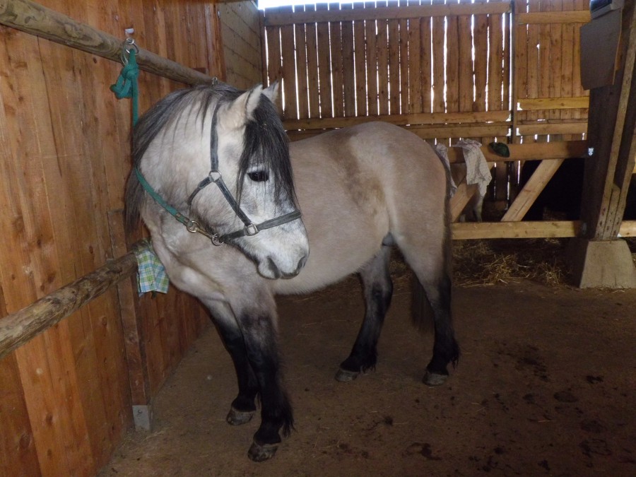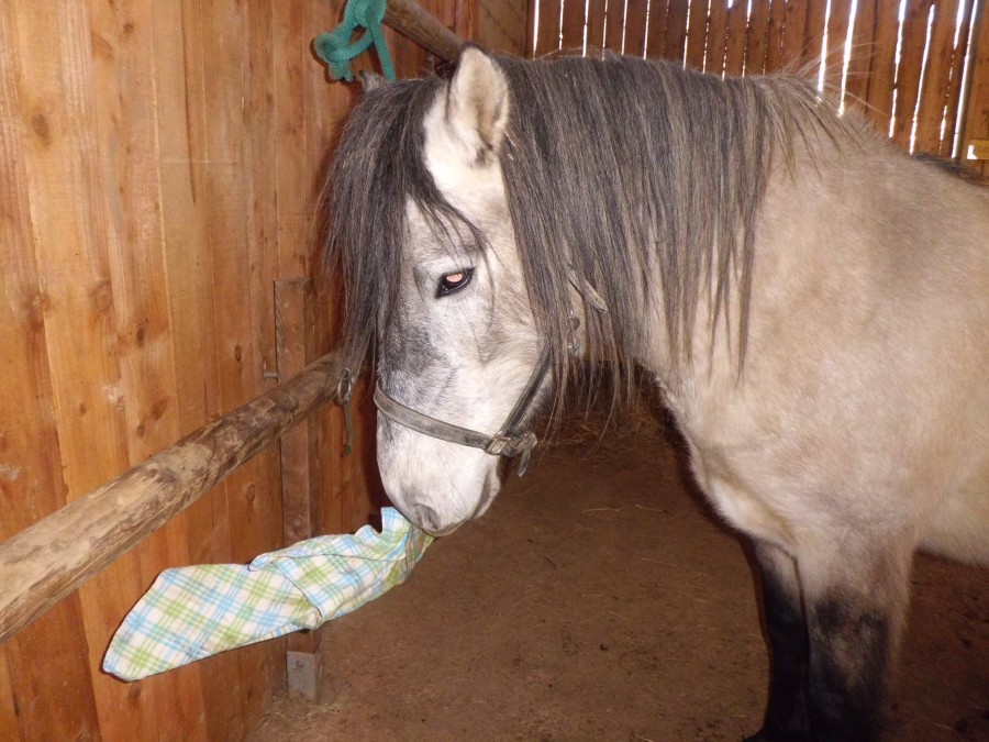 Bobo est vraiment chouette, à l'attache il bouge quasiment pas, à part quand il y a des juments à côté mais sinon il est très patient. Son médicament il l'adore, ça a un goût sucré alors aucun soucis pour lui donner