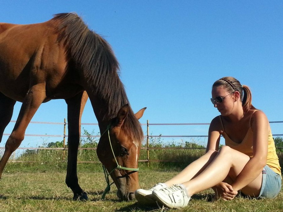 Justineflo: Très jolie cette petite alezane. Sur les photos, ce que je trouve c'est surtout que Brume à l'air beaucoup moins contracté et plus zen que avant et toi effectivement la position est mieux avec un meilleur placement de jambe.