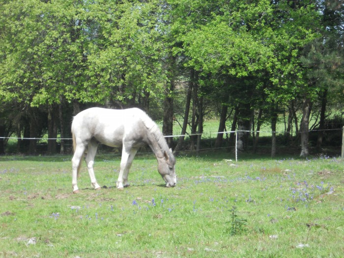 Et en fait on l'a retiré du pré pour le mettre en liberté dans le bas de l'écurie pour qu'il puisse profiter de la haute herbe: