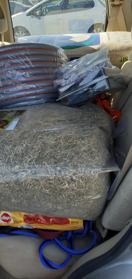 J'ai tari Manzana, elle ne profitait plus de ses rations, elle donnait tout pour le lait de Ksora... mise à la quasi-diète, elle a encore décolée... J'ai essayé de réintroduire une petite ration de concentrés, elle a de suite repris du pis, alors stop ! Tant pis elle reprends la diète : herbe et mix de fourrages en brins. Les températures ayant beaucoup baissées, je peux, cette fois, lui arrêter l'eau quasiment... 3L toutes les 12 heures, jusqu'à demain, et on verra si ça va.mieux. j'ai également acheté du blanc de Meudon ce soir, je vais lui faire un badigeon.