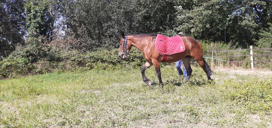 Ce matin travail de la petite Iris, qui n'était pas du tout dans le travail...on a fait light - on a pas pu lui mettre la selle, sangle trop grande...