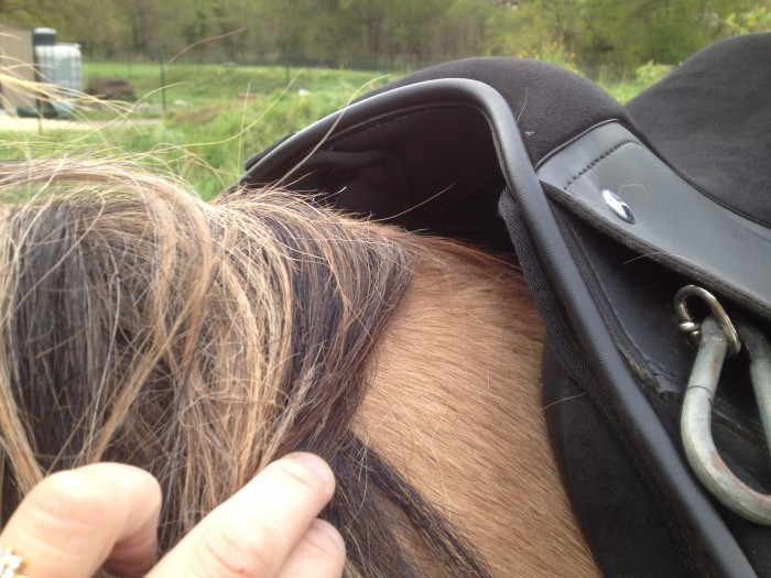 Vous pensez que l'arcade blanche est la bonne? Pour info je passe les 4 doigts de ma main entre son garrot et la selle (je précise que j'ai des petites mains, lol).