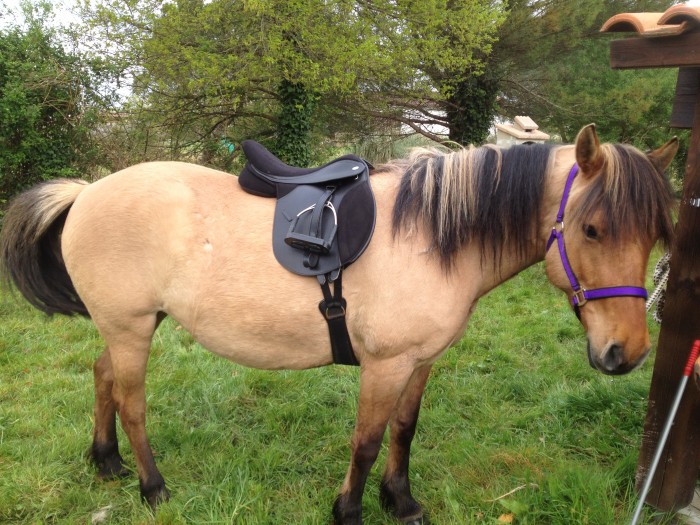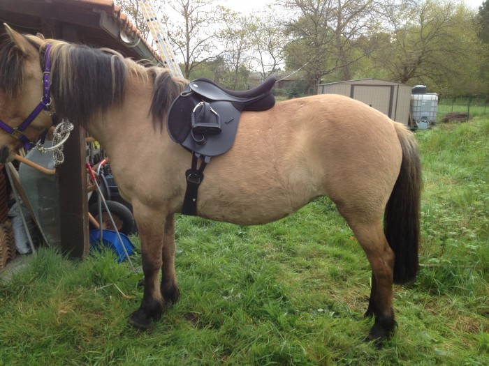 Merci encore gipsy90 pour ton avis. Je crois que je ne vais pas arriver à la mettre bien cette selle, lol . C'est peut être aussi à cause du gros bidou de ma ponette !!!!