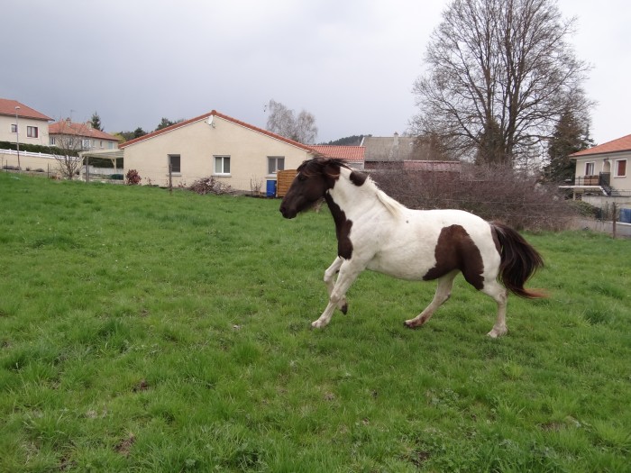 Deuxième sortie pour Chantili aujourd'hui. Poulain plutôt facile à manipuler au box et qui apprend déjà à marcher en longe. Une fois lâché, il est très tonique et pas facile à prendre en photo !!