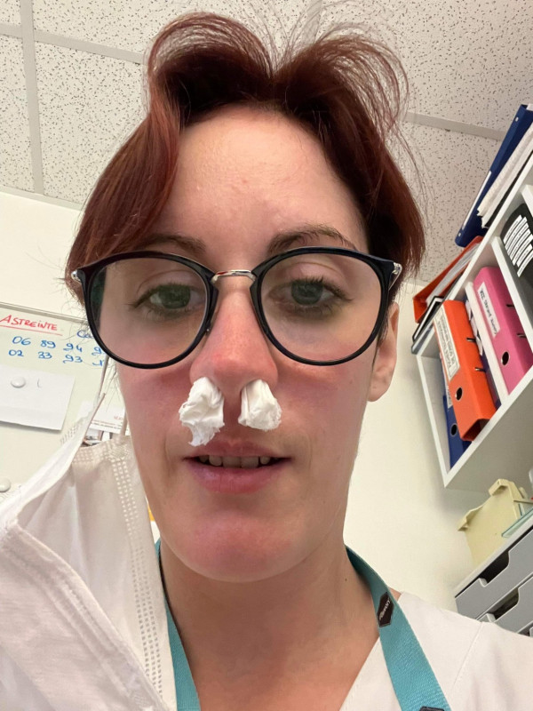 Pour éviter de te moucher toutes les 10min au boulot lol. Heureusement que le masque était là pour cacher ça ^^.