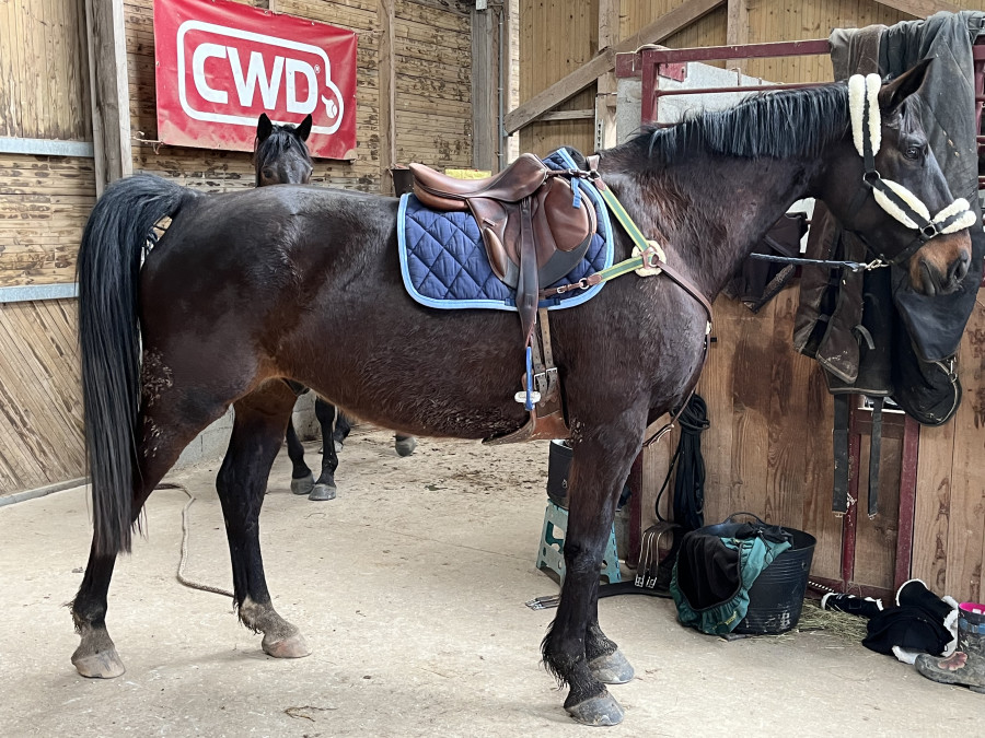 Attitude plus haute au trot, plus sur la retenue mais tjs calme (moins haute que d habitude par contre).