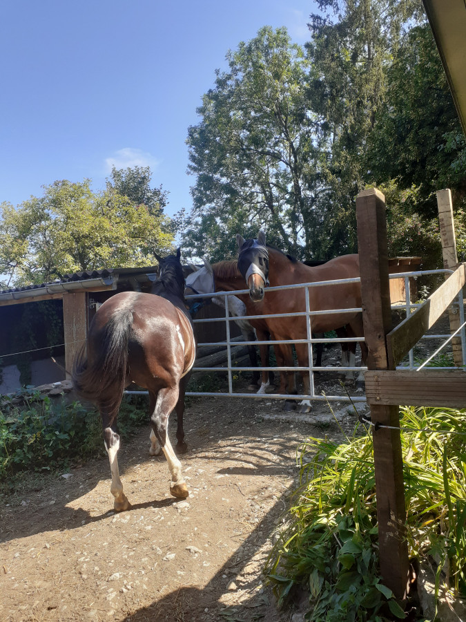 Flash est arrivé hier dans sa nouvelle pension! On l'a monté dans le camion et le véto lui a administré un calmant (le même mélange pour une castration), voyage 1h10 et il a débarqué calmement ;)