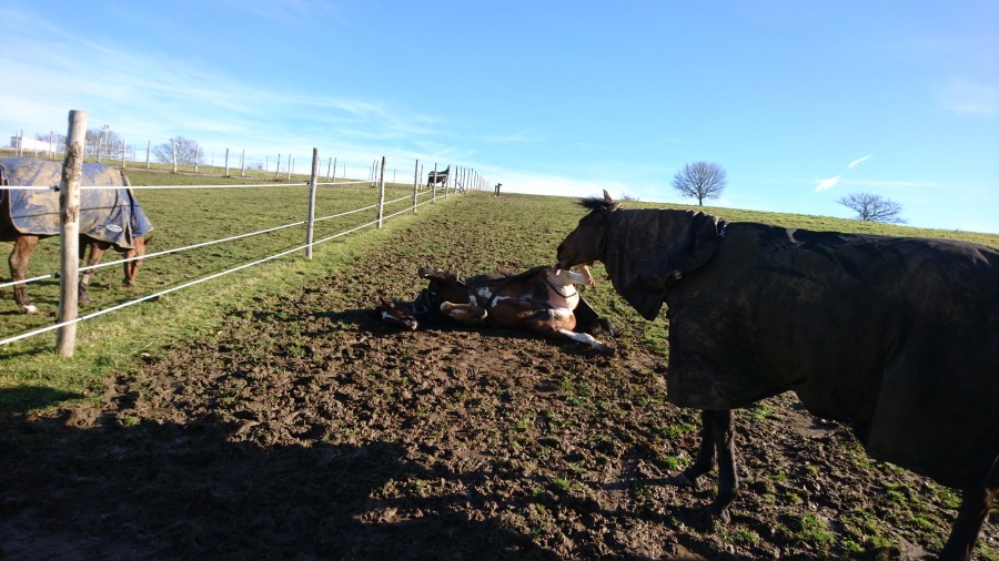 Et puis zou au pré il s'est roulé 2 fois et bien dans la gadoue !