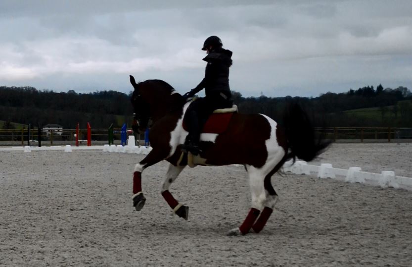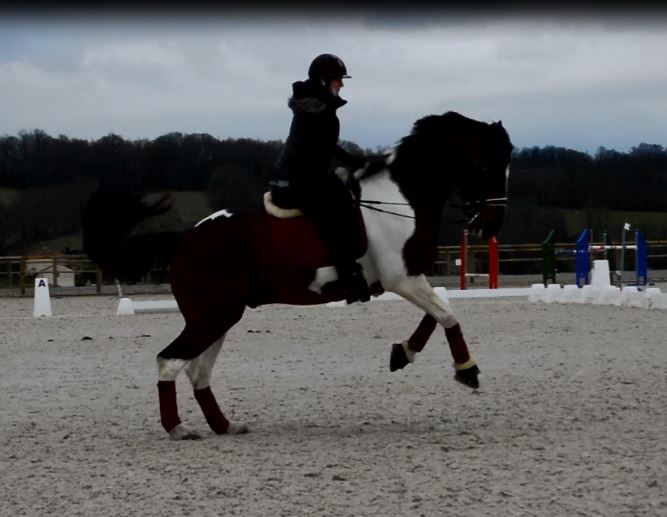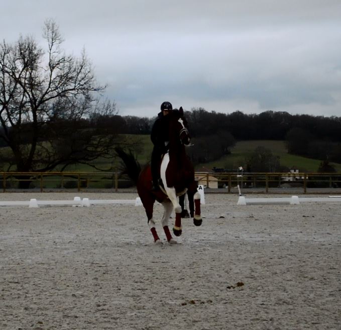 Mais au galop, il est quand même trop haut, et pour le coup assez actif tonique tac tac dans ses postérieurs... il faut vraiment qu'il soit plus bas plus rond, plus actif derrière mais pas plus vite.. tout un programme...