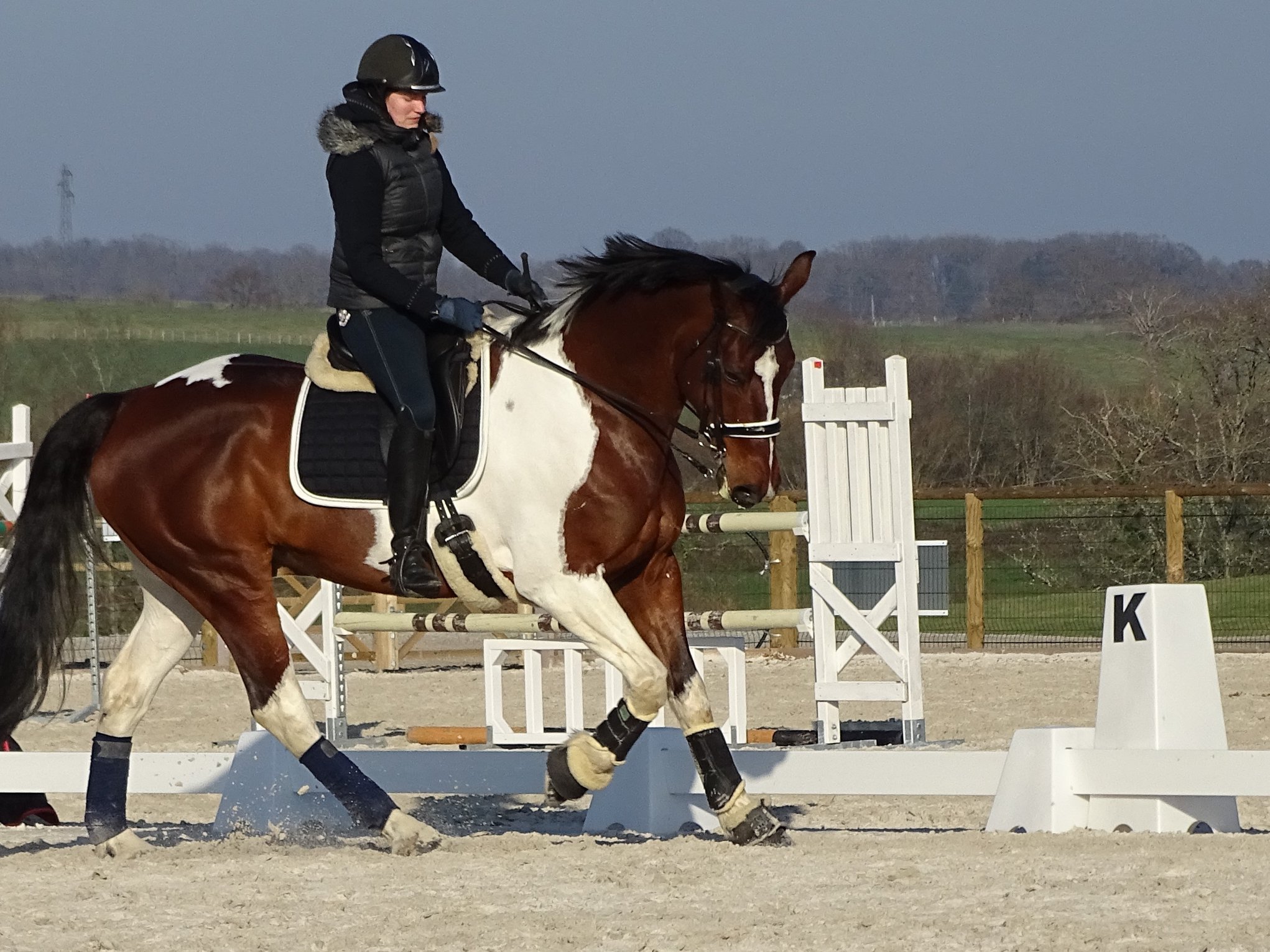 Puis j'ai refait l'enchainement d'exos au trot pour amener à l'appuyer, celui gauche ça allait à droite non, il ralentissait énormément et se mettait trop la haut, j'ai cédé sur le vitesse, mais vraiment la haut ça niet.